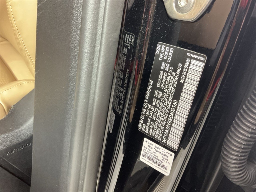 The Optional Features Included on this are: 10 Speakers, 4-Wheel Disc Brakes, 8-Way Power Seats, ABS brakes, Adaptive suspension, Air Conditioning, Alloy wheels, AM/FM radio: SiriusXM w/360L, Audio memory, Auto High-beam Headlights, Auto-dimming door mirrors, Auto-dimming Rear-View mirror, Automatic temperature control, Axle Ratio: 3.48, Brake assist, Bumpers: body-color, Compass, Delay-off headlights, Driver door bin, Driver vanity mirror, Dual front impact airbags, Dual front side impact airbags, Electronic Stability Control, Exterior Parking Camera Rear, Four wheel independent suspension, Front anti-roll bar, Front Bucket Seats, Front Center Armrest, Front dual zone A/C, Front reading lights, Fully automatic headlights, Garage door transmitter: HomeLink, Heated door mirrors, Heated front seats, HVAC memory, Illuminated entry, Knee airbag, Leather steering wheel, Low tire pressure warning, Memory seat, Navigation System, Occupant sensing airbag, Outside temperature display, Overhead airbag, Overhead console, Panic alarm, Partial Leather Seat Trim, Passenger door bin, Passenger vanity mirror, Porsche Communication Management, Power door mirrors, Power driver seat, Power Liftgate, Power passenger seat, Power steering, Power windows, Radio data system, Rain sensing wipers, Rear anti-roll bar, Rear fog lights, Rear reading lights, Rear seat center armrest, Rear side impact airbag, Rear window defroster, Rear window wiper, Remote keyless entry, Security system, Speed control, Speed-sensing steering, Split folding rear seat, Spoiler, Steering wheel mounted audio controls, Tachometer, Telescoping steering wheel, Tilt steering wheel, Traction control, Trip computer, Turn signal indicator mirrors, Variably intermittent wipers, Voltmeter, and Wheels: 20 Cayenne Design.